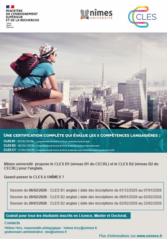 A UNÎMES, cette certification est proposée en anglais. Elle est gratuite pour tous les étudiants inscrits en Licence, Master et Doctorat à UNÎMES.