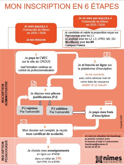 Les inscriptions administratives se déroulent exclusivement en ligne à partir de mi juin et elles seront ouvertes jusqu'au 22 juillet 2026.