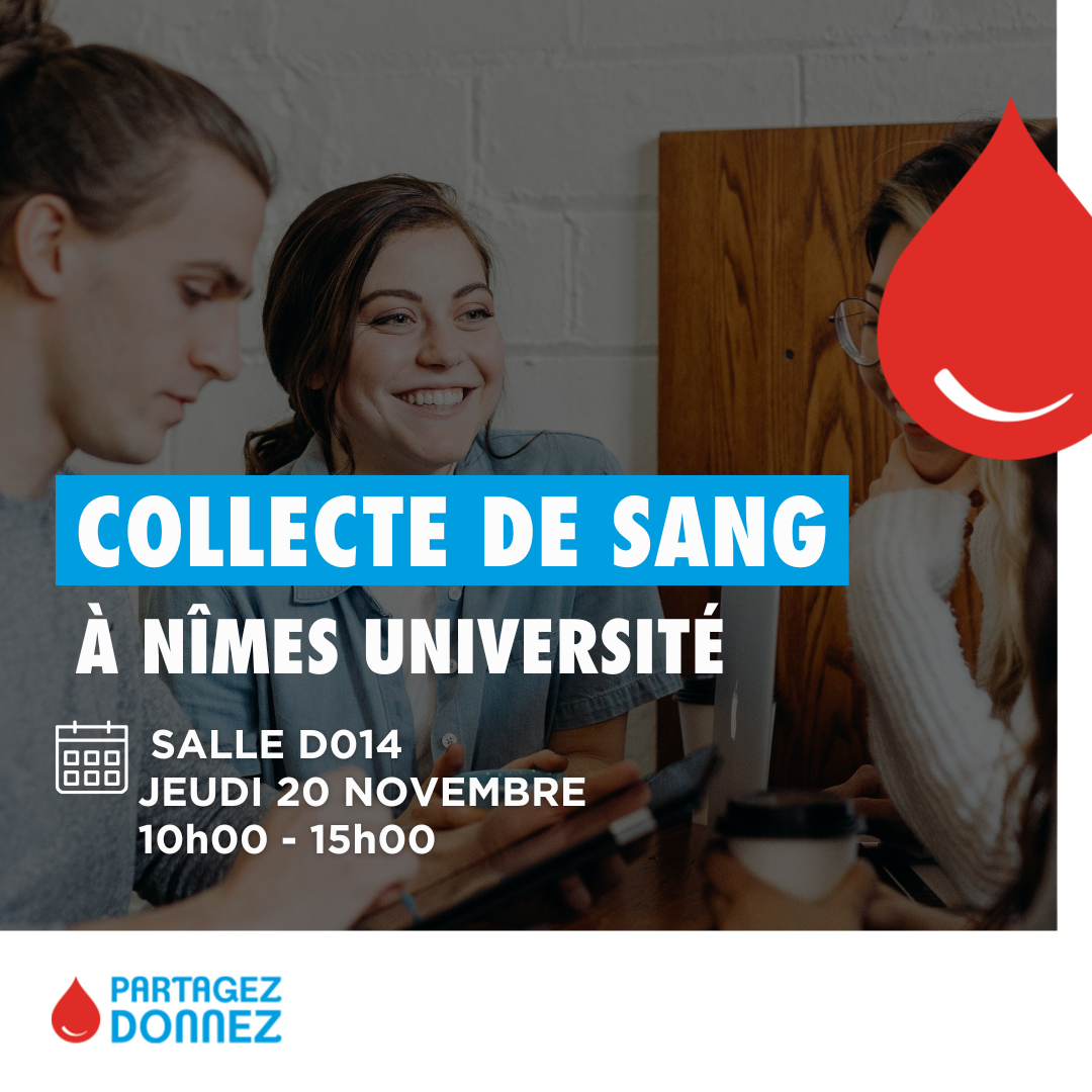 L'Établissement Français du Sang organise une collecte de don du sang sur le site Vauban de Nîmes Université. Le 20 novembre de 10h à 17h en salle D014 du site Vauban.
